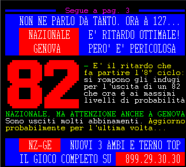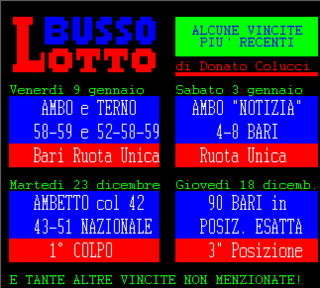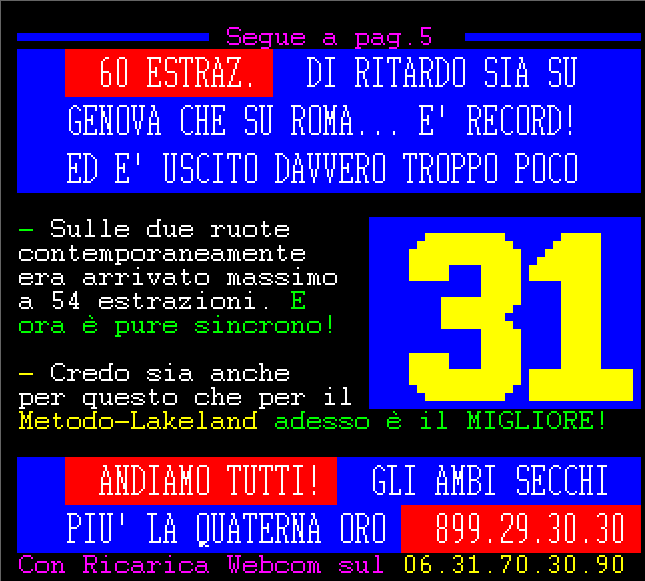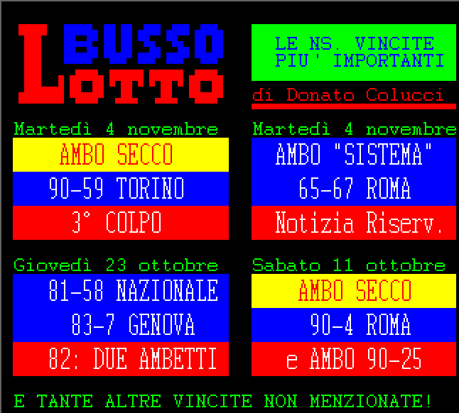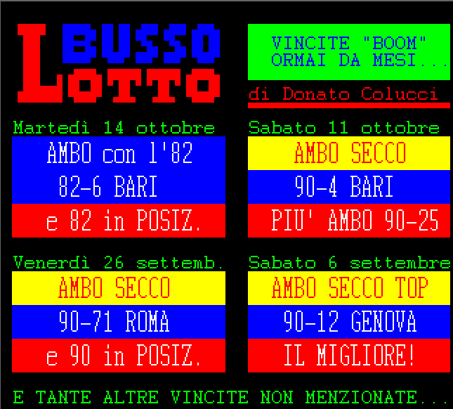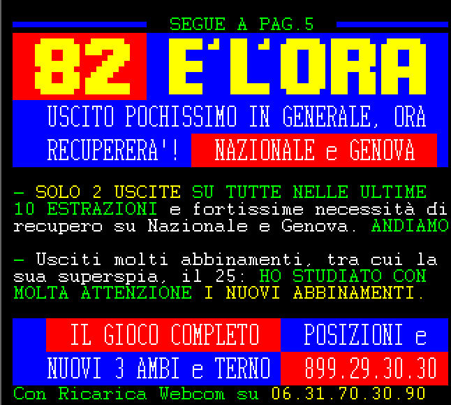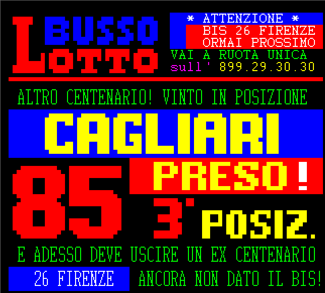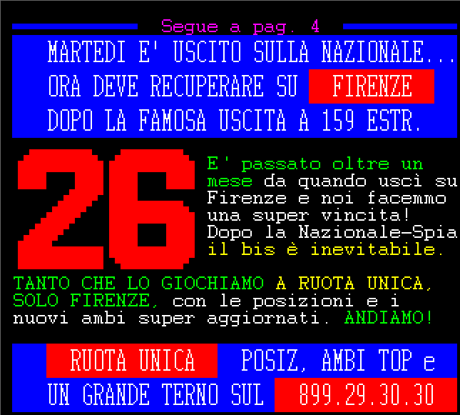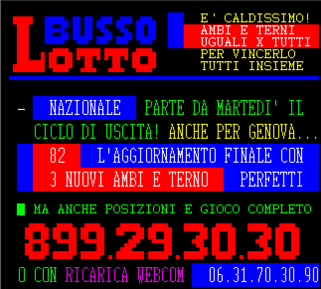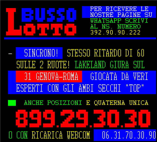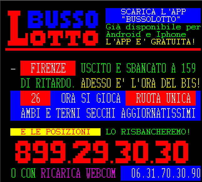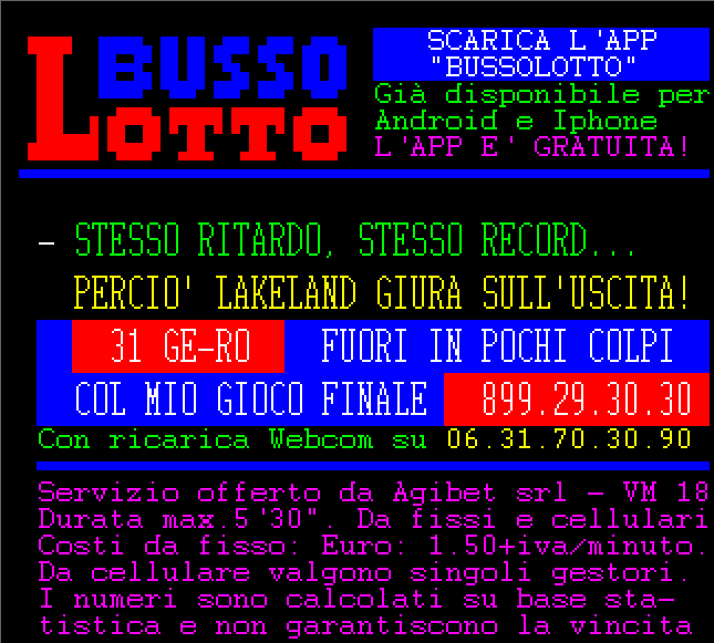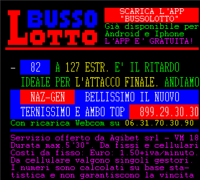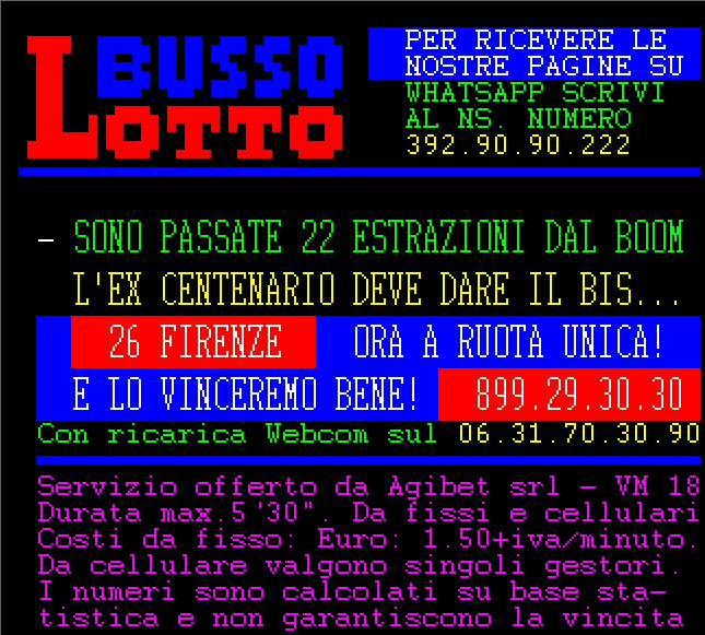 Le informazioni del nostro servizio Audiotel sono elaborati su base statistica e non garantiscono in alcun caso la vincita certa.