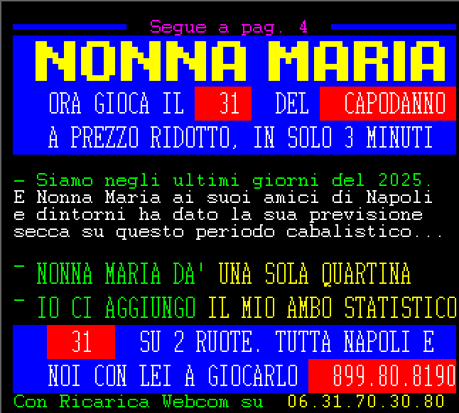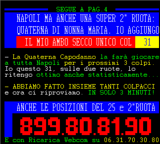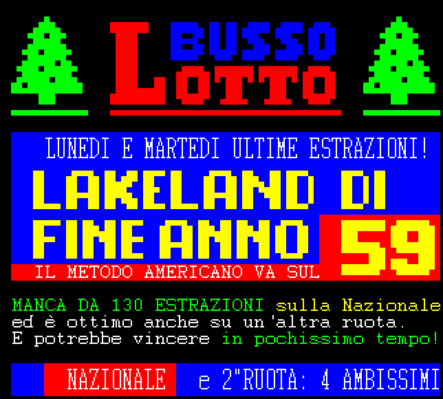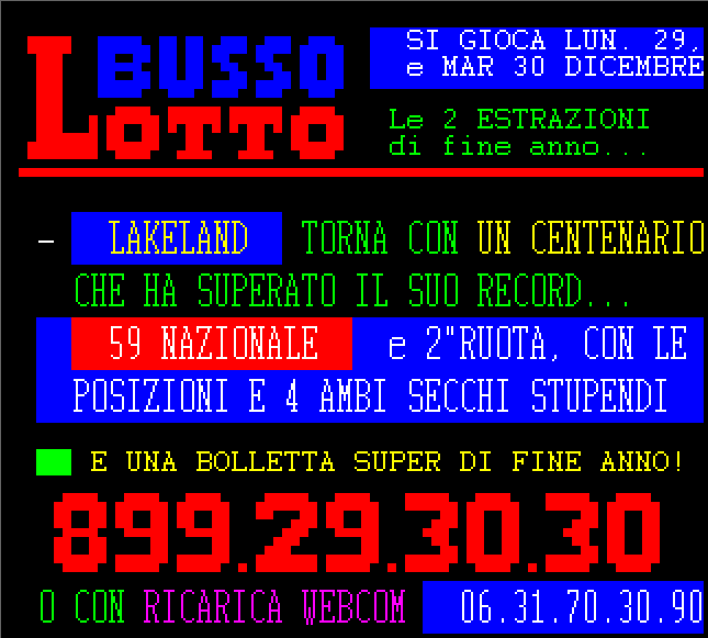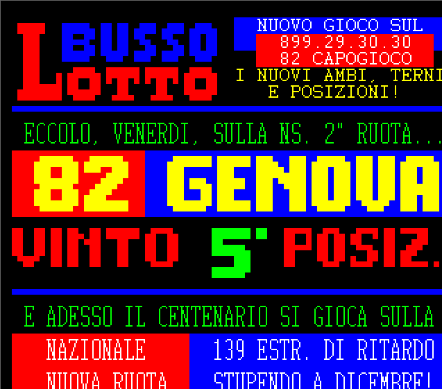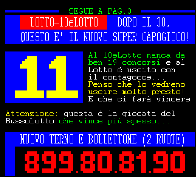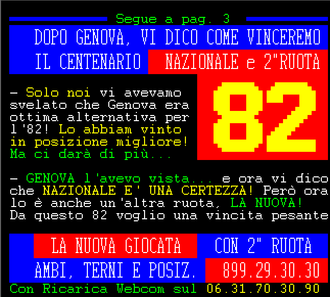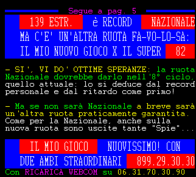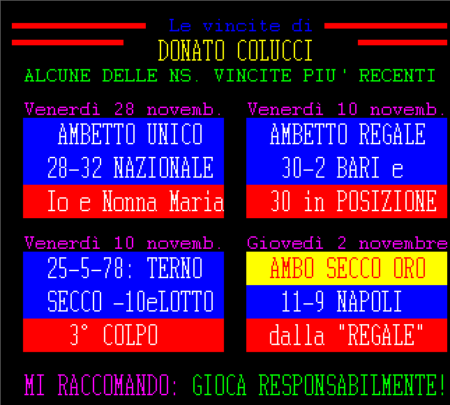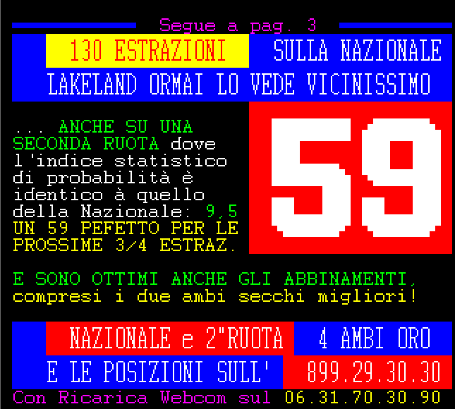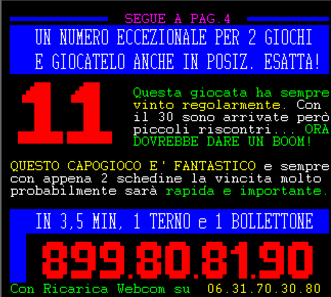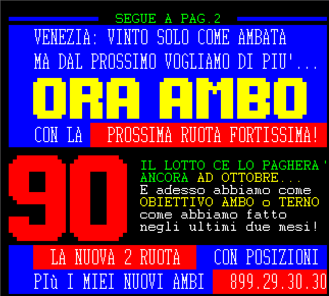 Le informazioni del nostro servizio Audiotel sono elaborati su base statistica e non garantiscono in alcun caso la vincita certa. I nostri servizi raccomandano sempre un approccio al gioco responsabile, "ragionato", controllato e mai eccessivo. Si ricorda che tutti i giochi sono vietati ai minori di anni 18.