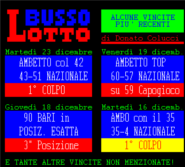 Il BussoLotto - sulla base dei dati ufficiali forniti dalla Lottomatica - pubblica in fac-simile le bollette più ricche in Italia. La vincita più alta dell'ultima estrazione è stata fatta a...