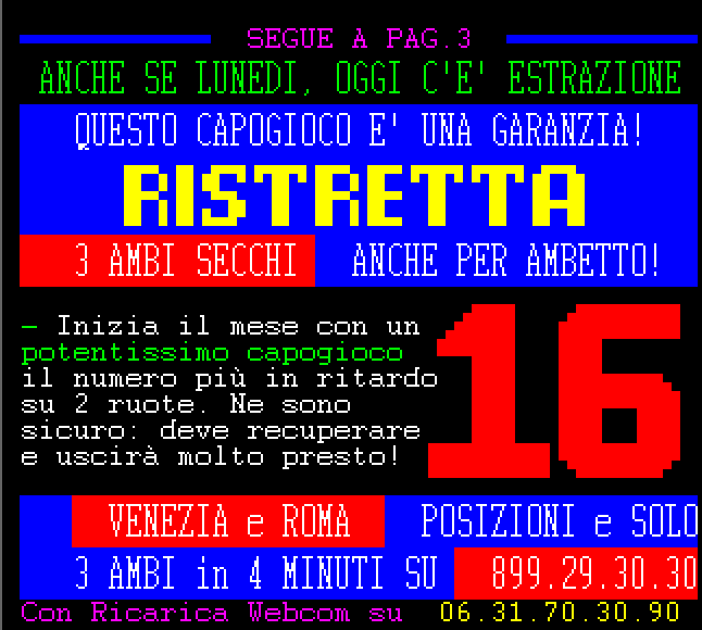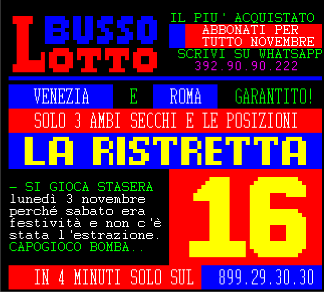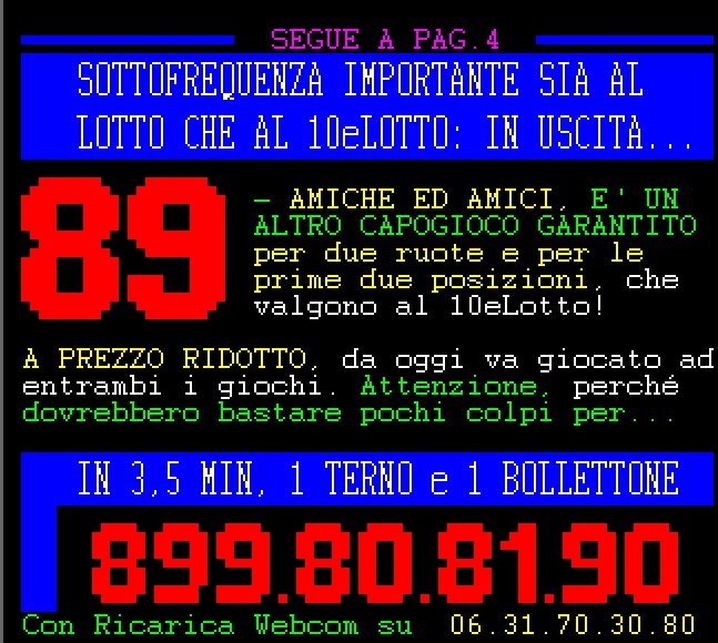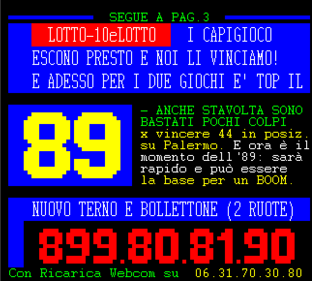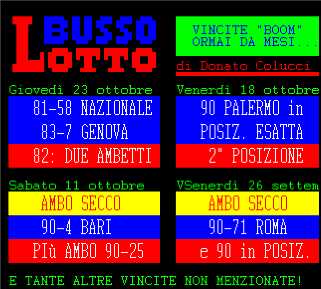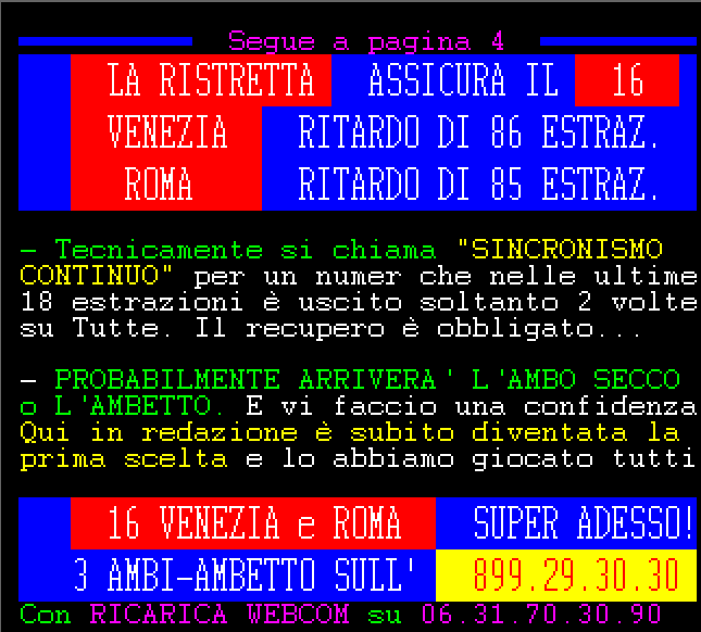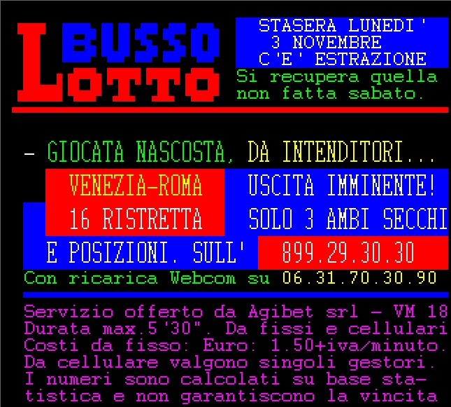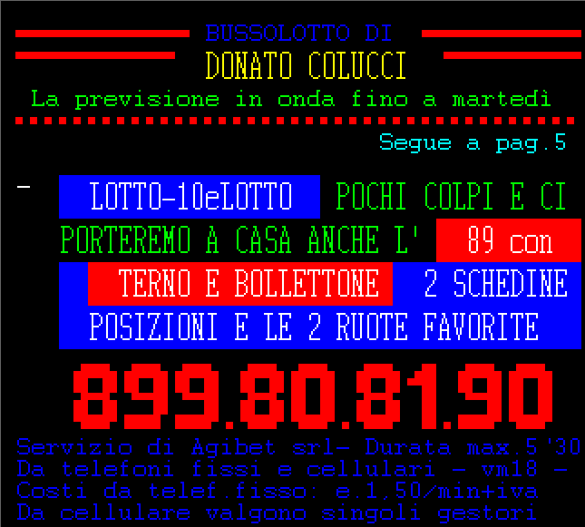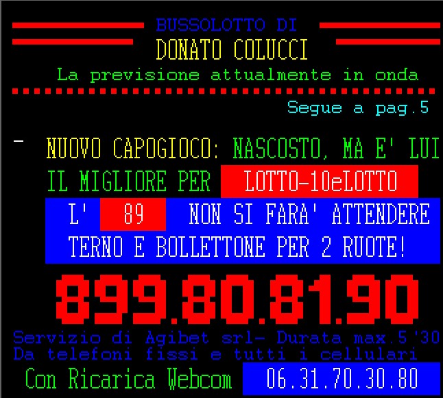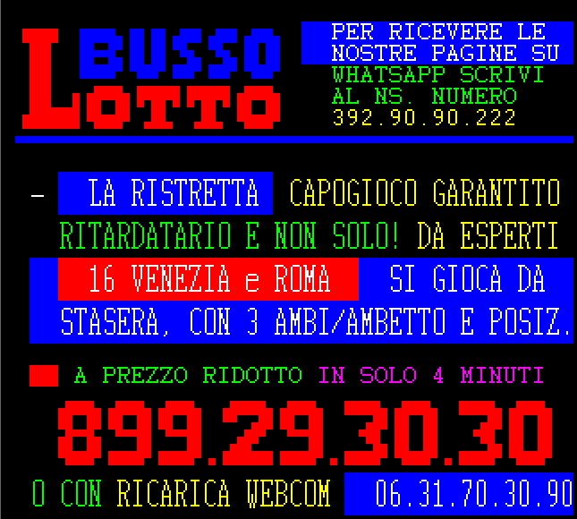 Le informazioni del nostro servizio Audiotel sono elaborati su base statistica e non garantiscono in alcun caso la vincita certa.