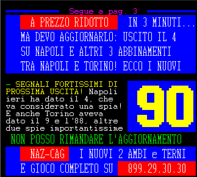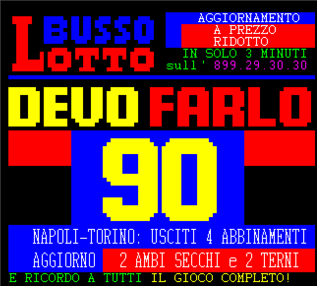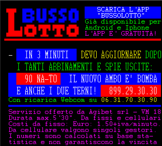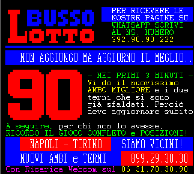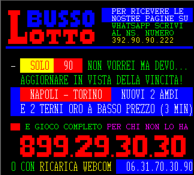 Le informazioni del nostro servizio Audiotel sono elaborati su base statistica e non garantiscono in alcun caso la vincita certa. I nostri servizi raccomandano sempre un approccio al gioco responsabile, "ragionato", controllato e mai eccessivo. Si ricorda che tutti i giochi sono vietati ai minori di anni 18.